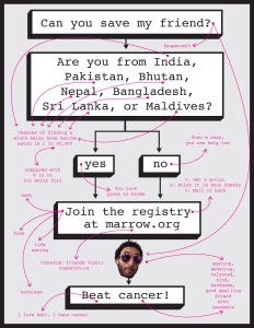 It’s surprising to me after all this time that there are still people not registered in the bone marrow registry. At last week’s San Francisco Subcontinental Drift, I eagerly convinced my friend to sign up to the bone marrow registry at the back table, surprised that he hadn’t done so already. “I’ve been in the registry for 7 years,” I told him. “All it takes is 4 simple cheek swabs and you are in.” Within minutes, he was in the registry too.